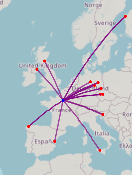 Voilà les images du Reverse Beacon Network pour les deux bandes utilisées 20m (en violet à droite) et 40m (en orange à gauche) :