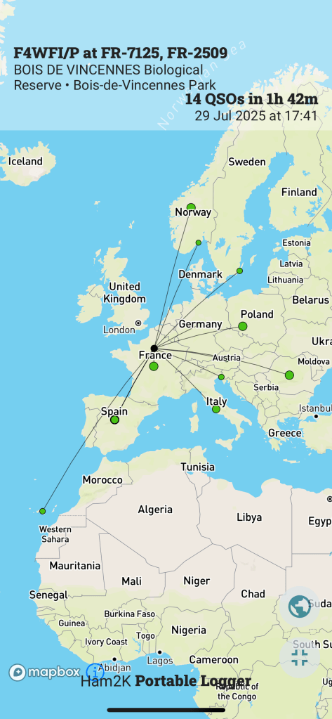 Au compteur cela donne 14 QSO dont une bonne partie en Park-to-Park. Y’a pas à dire ça aide d’être coaché par un OM d’expérience en POTA ! Merci encore Rémi F4JSU.