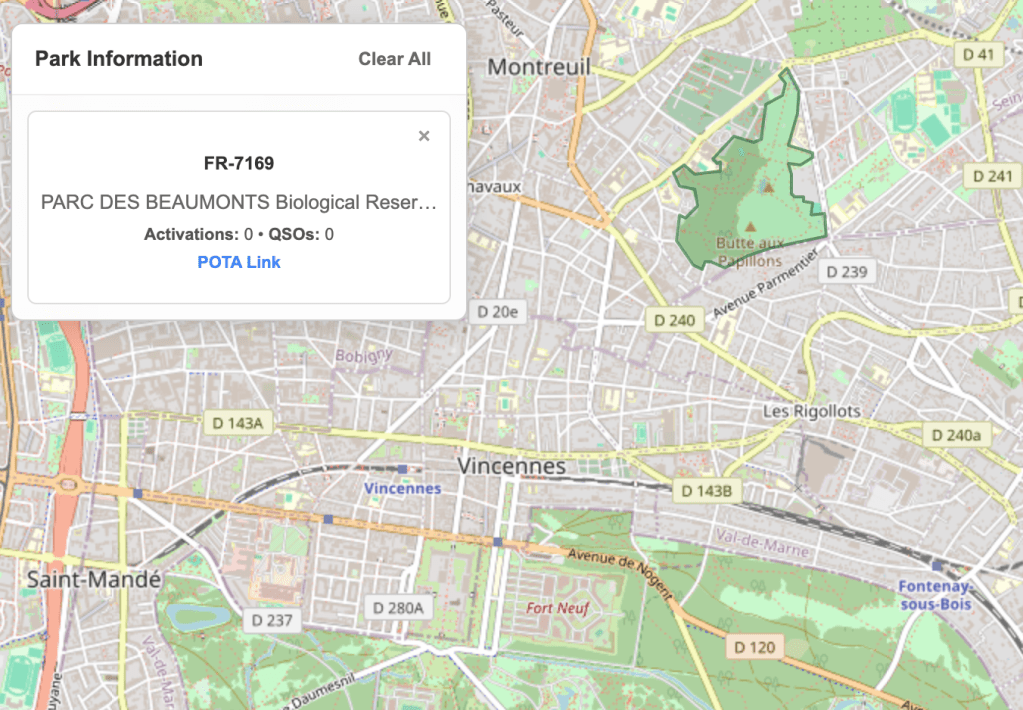 Je continue mon défrichage de parcs dans mon coin, après le FR-7166, c’est le tour du Parc des Beaumonts FR-6169, encore une référence jamais activé ! Je trouve assez curieux qu’il y a autant de grand parcs jamais activés dans mon coin d’ailleurs. Je sais bien que les OM ne courent pas les rues mais quand même.