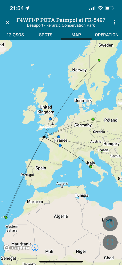 A noter, deux QSO avec les Canaries à plus de 2500 km !