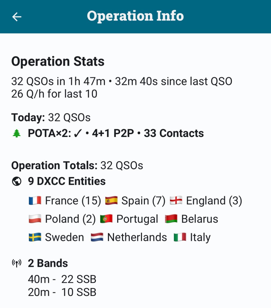 Donc oui, je vous confirme que je suis accro au POTA ! Mais je vous assure que y’a rien de mieux pour terminer une semaine de rentrée que de se replonger avec délice dans les QSO et se promener ainsi dans toute l’Europe.