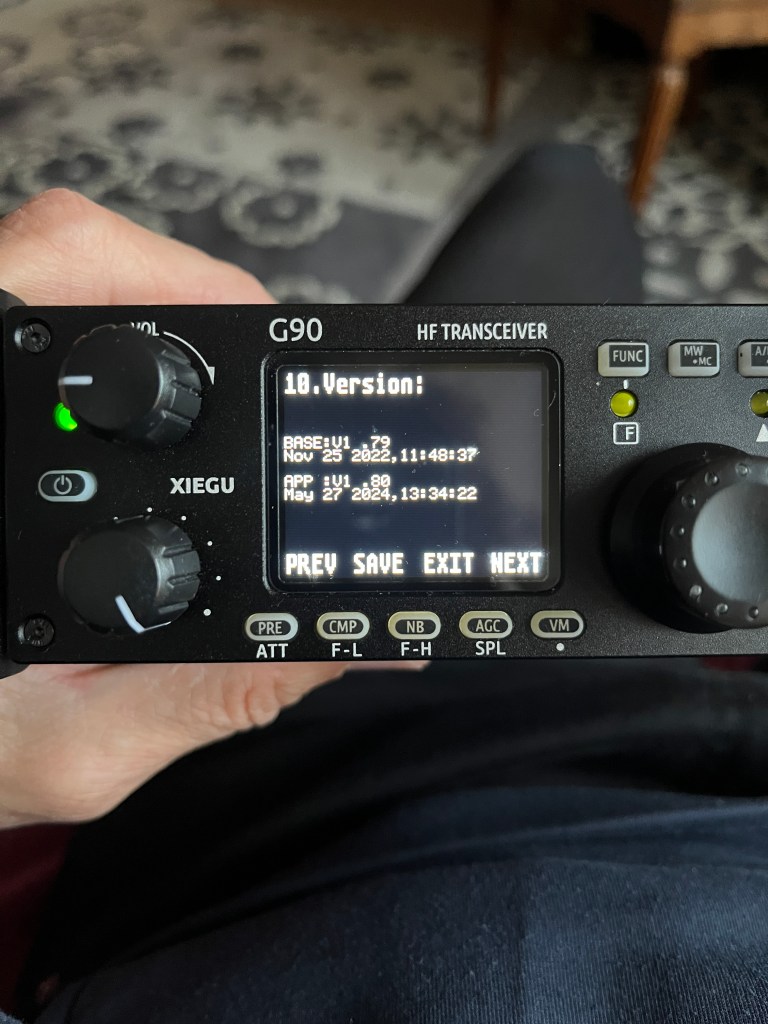 Acheté en juin, le G90 était arrivé avec une version 1.79 pour la base (la radio elle-même) et la 1.80 pour la partie indiquée APP (soit la face avant) :