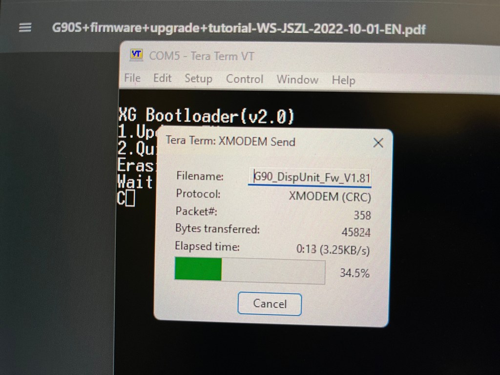 Si on suit scrupuleusement la documentation Xiegu ce n’est pas très compliqué à faire mais quand même un peu barbu car il faut configurer le logiciel Tera Term sur Windows pour effacer le firmware avant de le mettre à jour.