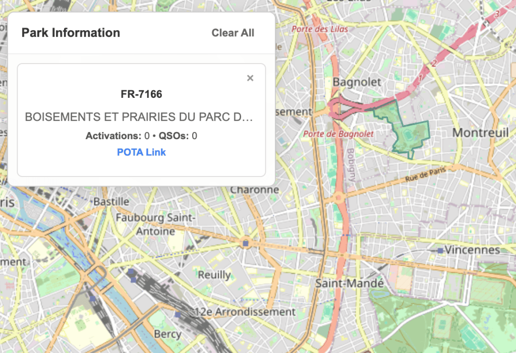 Vu que je m’étais cassé le nez sur le Fort de Rosny (voir cet article) je me suis rabattu sur le splendide Parc des Guilands à Montreuil, appelé aussi Parc Jean-Moulin pour me faire ma dose de POTA du jour ! J’avais déjà activé ce parc il y a un mois, je connaissais donc les lieux.