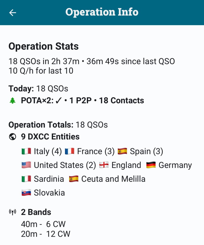 18 QSO au compteur ! La plus grosse difficulté reste encore de déchiffrer les indicatifs, heureusement que les OM sont pour l’immense majorité très patients. Ceux qui ne le sont pas passent sur une autre fréquence donc ce n’est pas bien grave.