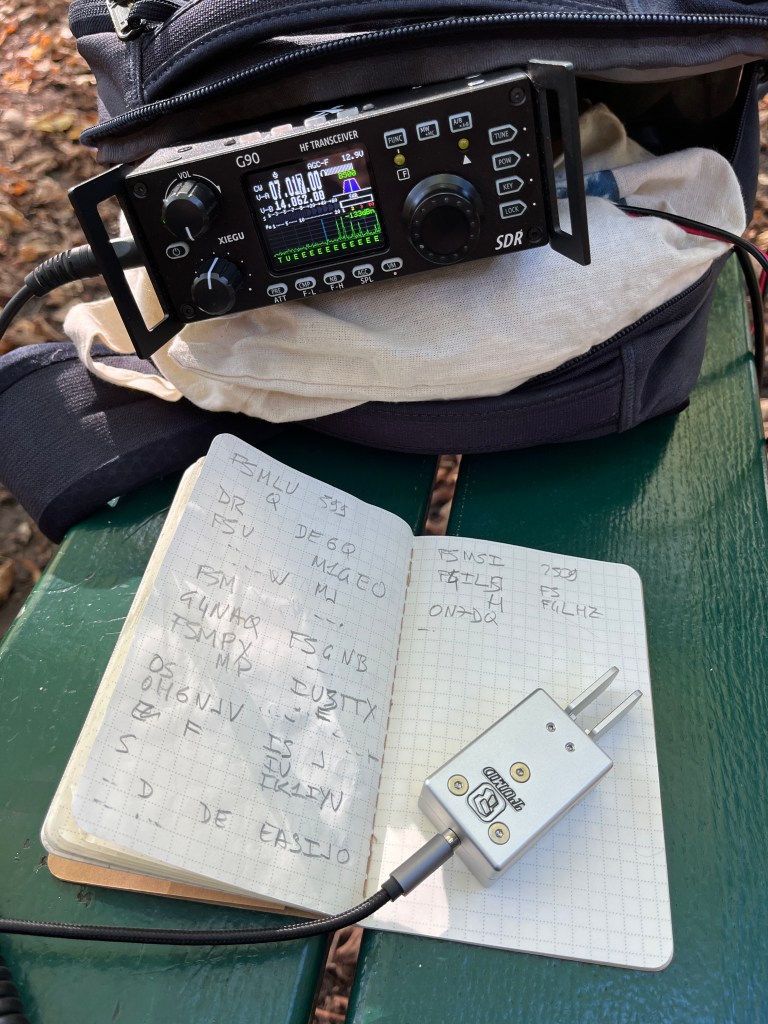 24 QSO 100% en CW, je commence à sentir que je galère moins pour décoder les indicatifs. Je demande encore tout le temps de répéter mais disons que c’est de moins en moins laborieux. La photo de mon carnet en est la preuve :