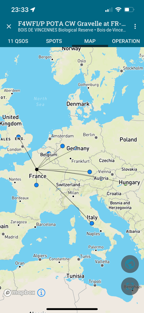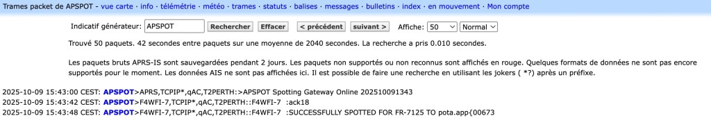 Dans un précédent article, je parlais de l’activation POTA sans Internet. Cet après-midi je suis allé dans le Bois de Vincennes (quelle surprise !) dans un endroit avec une couverture APRS pour tenter de faire fonctionner le mécanisme APSPOT (apspot.radio).