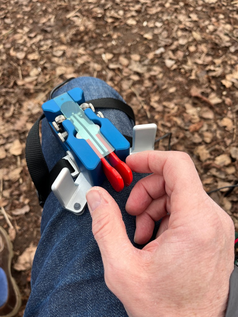 Je testais aussi la Begali Traveler Light attachée sur la cuisse. Je pensais que ça allait être mal commode mais en fait c’est super confortable une fois qu’on a trouvé la bonne position. Il faut en effet tourner un peu la clef pour qu’elle ne soit pas dans l’axe de la cuisse pour que cela donne une position plus naturelle pour le bras.