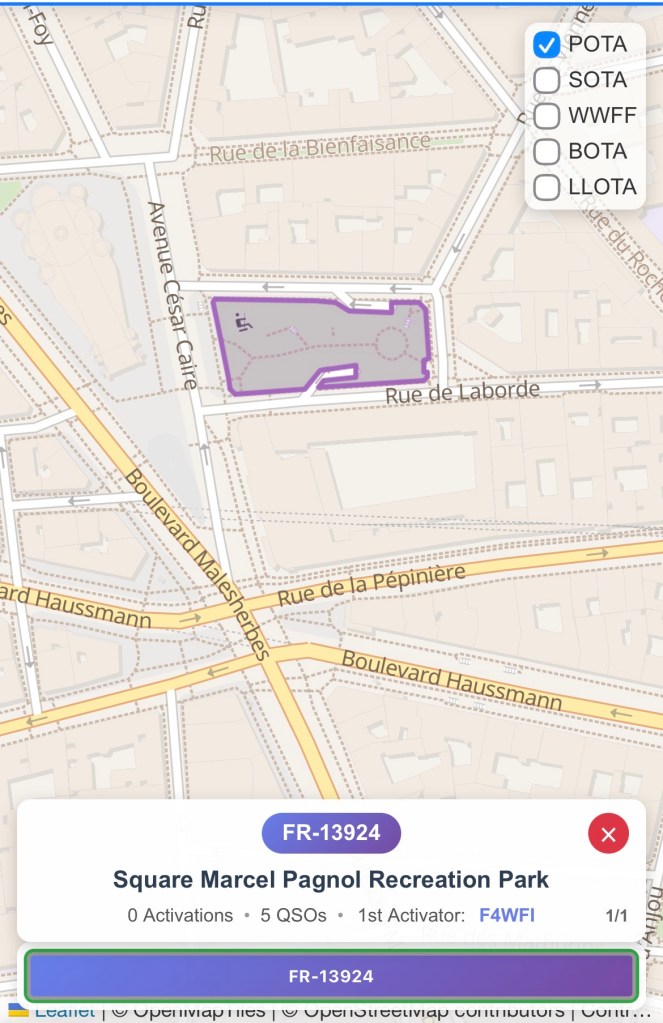Le square Marcel Pagnol référence POTA FR-13924 dans le 8ème arrondissement de Paris, juste à côté de l’église Saint Augustin n’avait pas encore été activé. Eh bien, c’est chose faite depuis ce lundi de Pâques 2026 par votre serviteur.