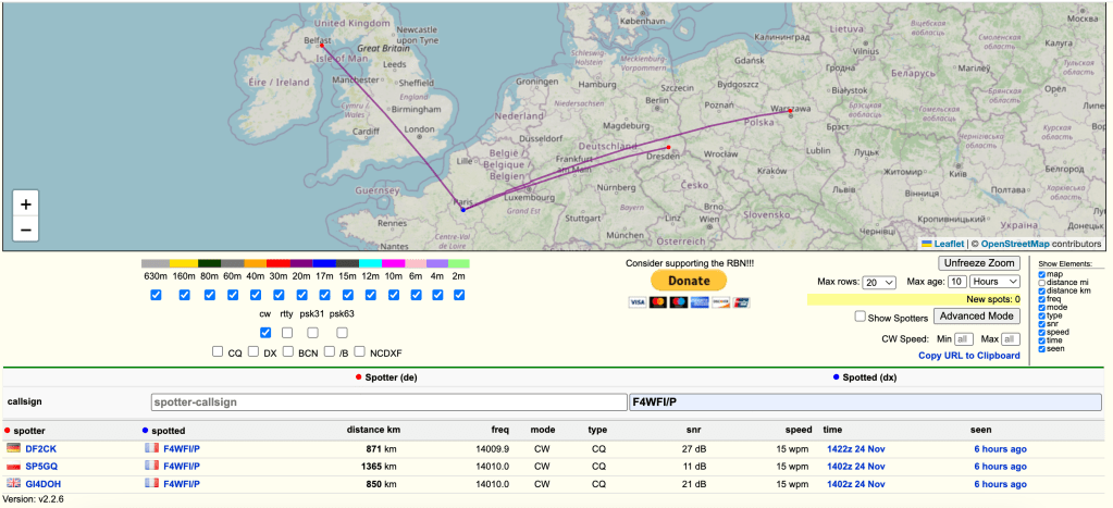 Par la suite Jean-Michel F4PZN a posté mon activité sur son cluster pour attirer d’autres OM, ce qui a bien aidé par la suite.