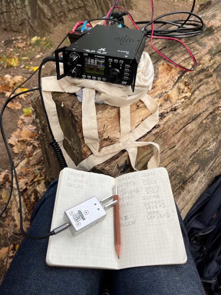 Coté performance, cette antenne EFHW est résonnante sur 10, 20 et 40m avec un TOS facilement en dessous de 1,5 voir moins. Au besoin, je peux l’accorder sur d’autres bandes en activant le tuner du G90, ce que je fais de temps en temps si nécessaire.